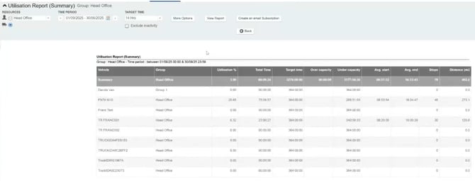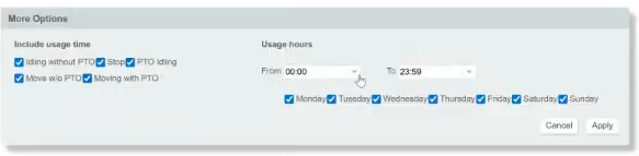 El informe de uso te permite, como cliente, comprobar parámetros específicos relacionados con el uso de tus vehículos. Este informe puede incluir datos como el tiempo en ralentí, paradas y distancia recorrida dentro de fechas y periodos determinados.