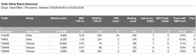 Accès aux données historiques de poids EBS – Capacité à identifier où la charge de la remorque a changé