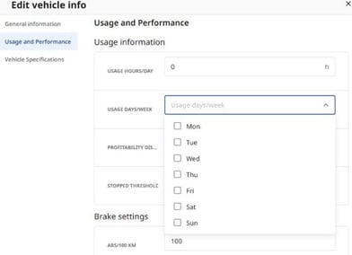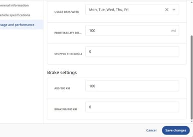 Cela vous permet de mettre à jour les informations générales, et plus particulièrement pour ce cas d’usage, les sections « Utilisation et performance » et « Caractéristiques du véhicule ».