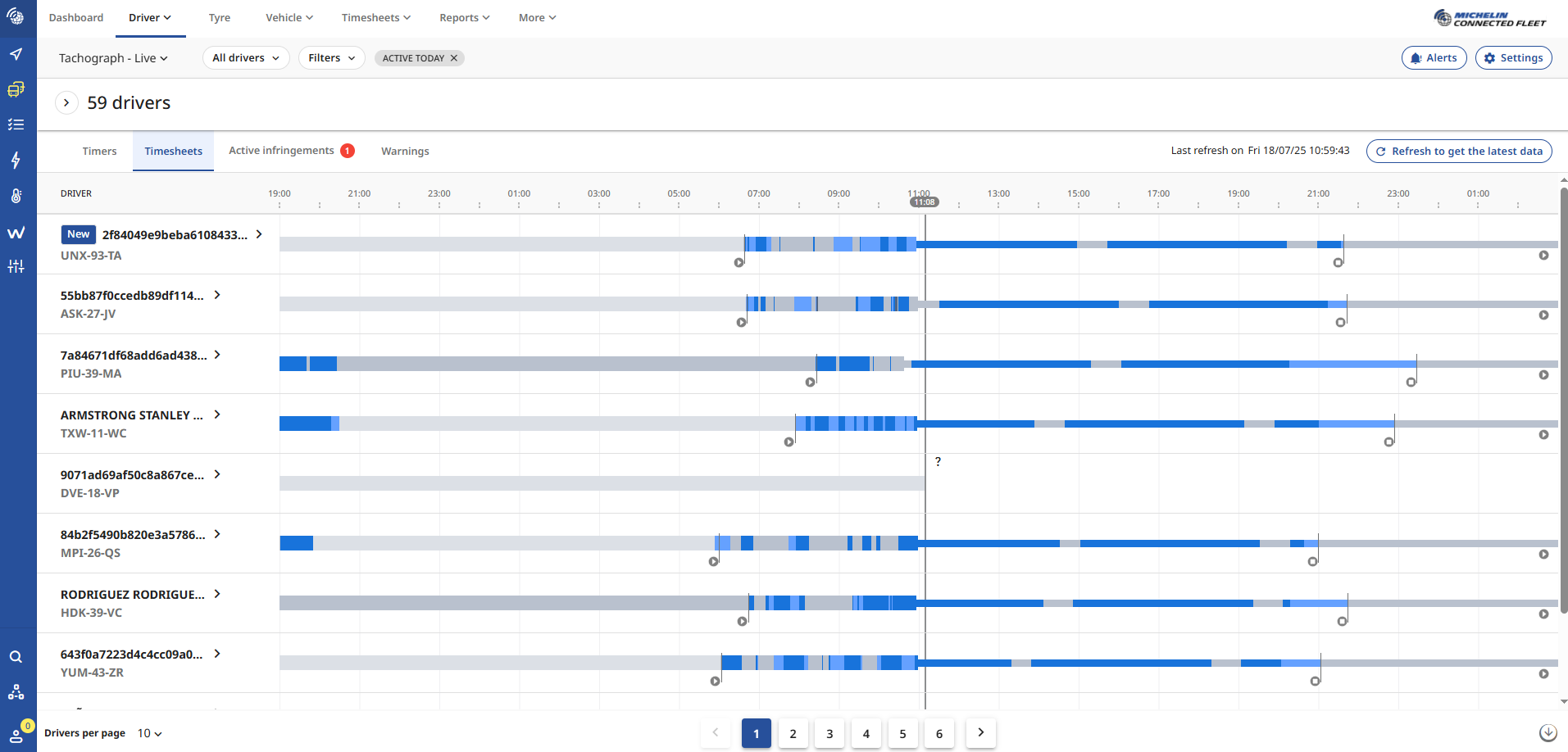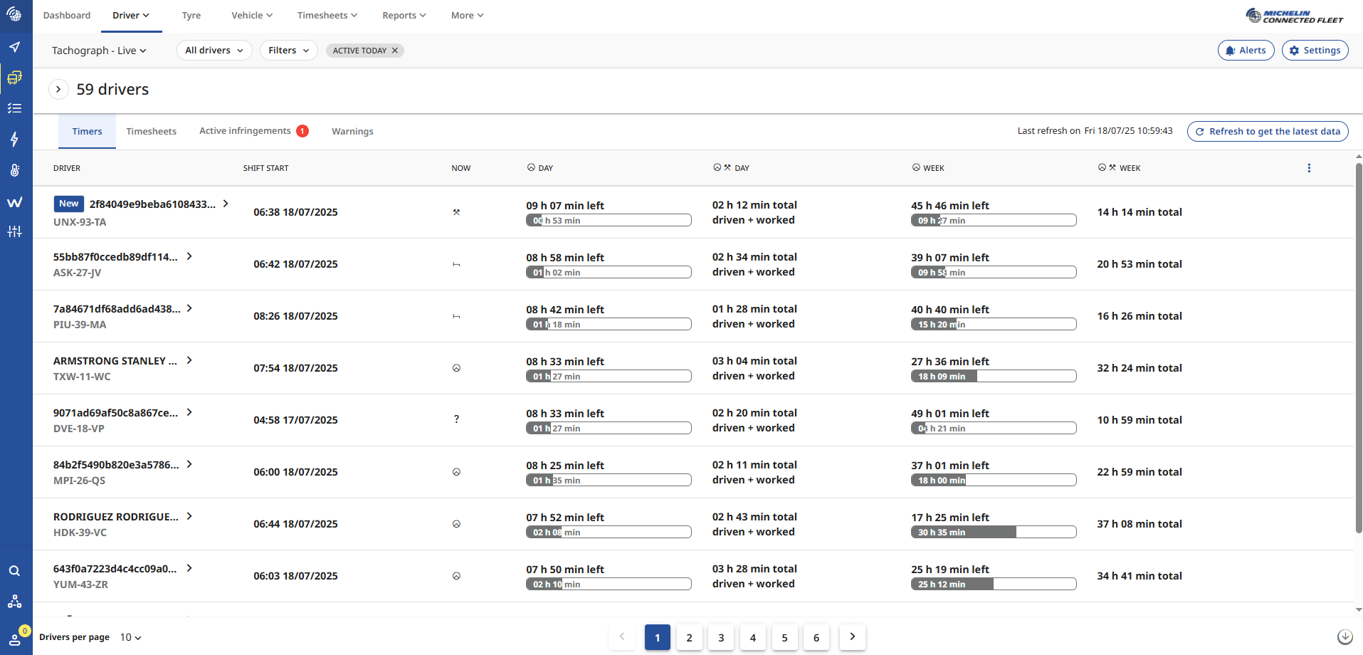 The end-user can explore the activities and infringements of the drivers, and check the consistency of their hours in a more or less recent past: