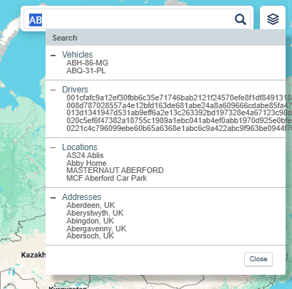 The advanced search is available from any window with MICHELIN Connected Fleet's Connect