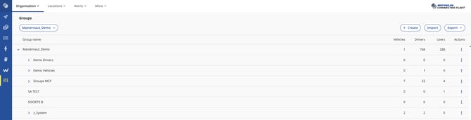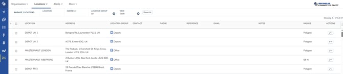 Locations are organised by groups. Within MyConnectedFleet there are a default set of Location groups these are: