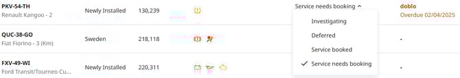 By clicking here, it allows the vehicle to be investigated, deferred or booked in for service. When the status is changed, the icon changes to be able to differentiate between faults that need actioning and faults that have been planned or booked in to be rectified.