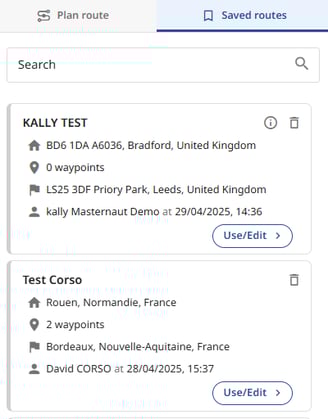 All your saved routes will be available in the "Saved Routes" section at the top.