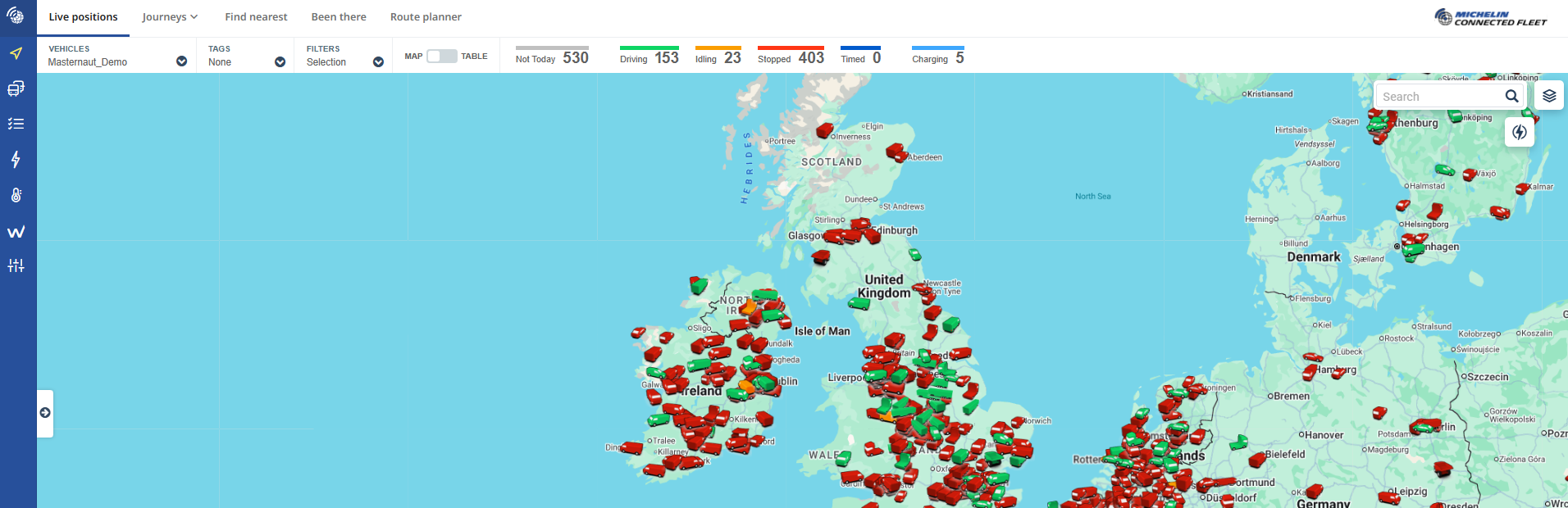 Within any page of MyConnectedFleet it is possible to use the “Advanced Search” functionality.
