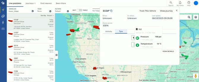 The dashboard allows you to view the real-time status of your fleet’s tyres.